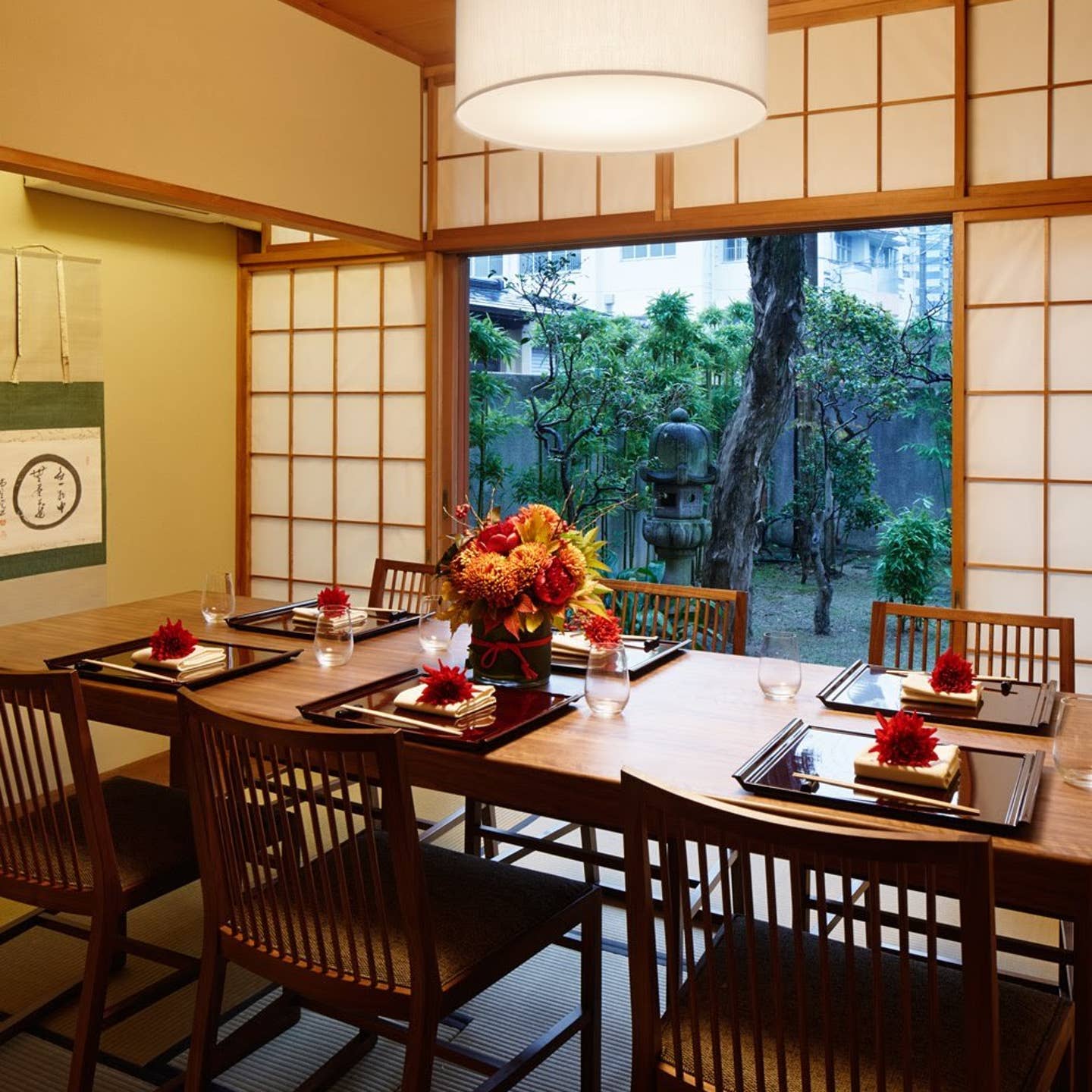 閑静な立地に佇む隠れ家のような当店では、四季折々の表情を見せる美しい日本庭園を眺めながら、宮崎牛をはじめとする極上の食材をご堪能いただけます。A4ランク以上の宮崎牛をメインに、伊勢海老や活き鮑など新鮮な海の幸も取り揃え、目にも舌にも贅沢なひと時を演出いたします。さらに、世界各地から厳選した約50種のワインを揃え、料理とのペアリングコースもご用意。8名様までの...